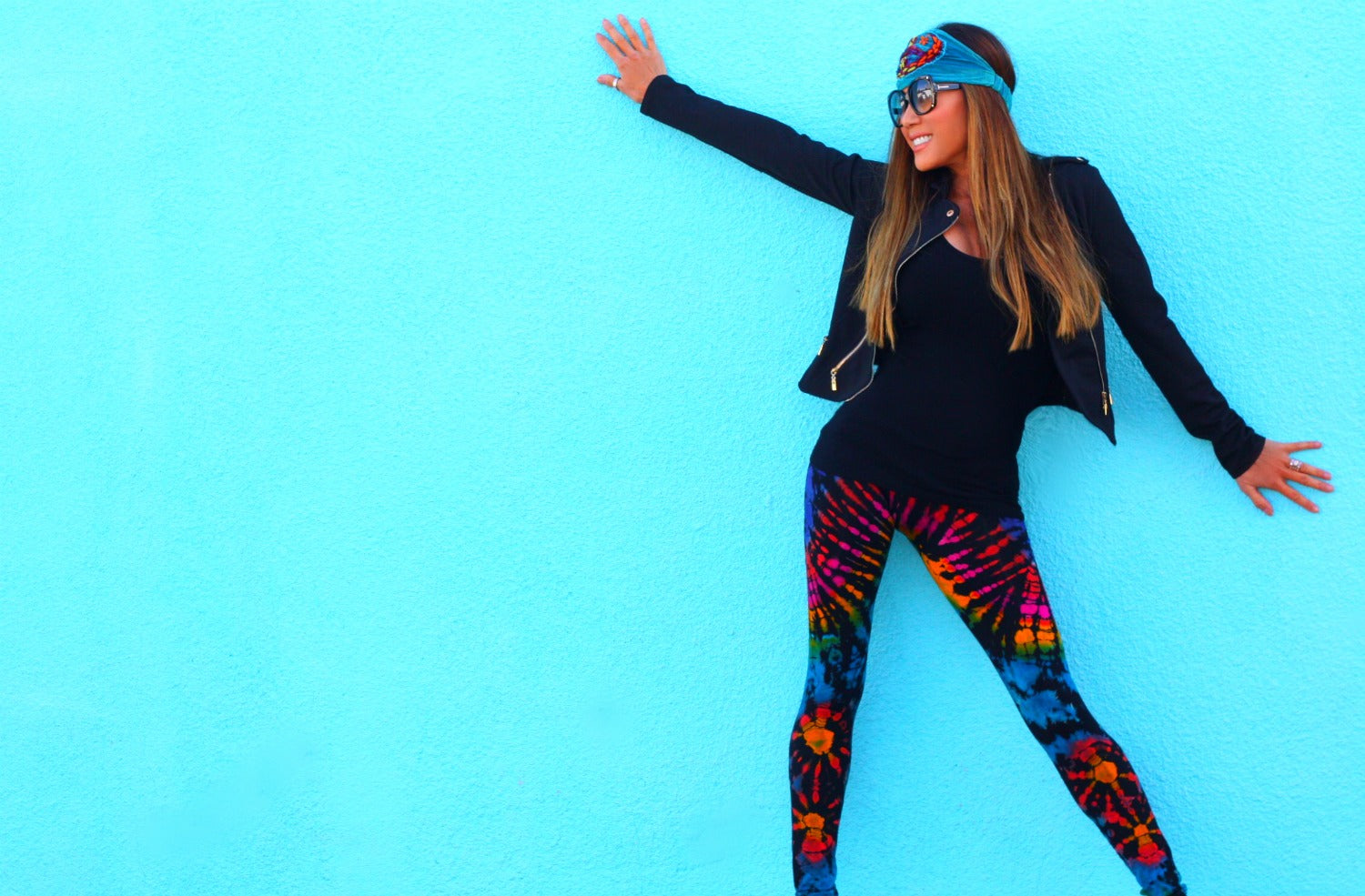 This sleek black moto jacket adds instant edge to any outfit. Designed with soft stretch fabric and luxe gold zipper details, it’s the perfect throw-on piece post-workout or for an effortlessly chic look on the go. Pairs perfectly with yoga pants, leggings, shorts, or jeans.